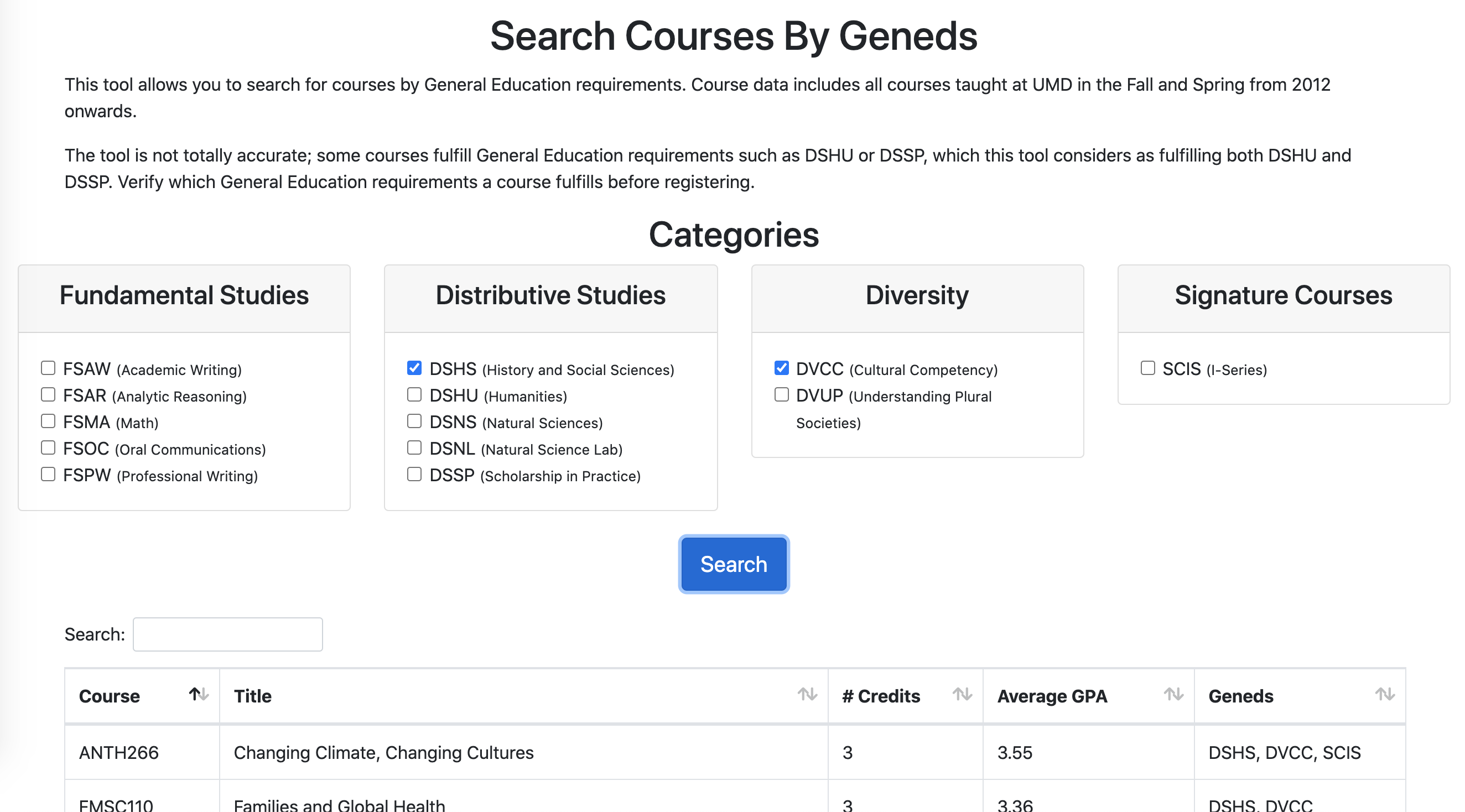 Search Courses By Geneds